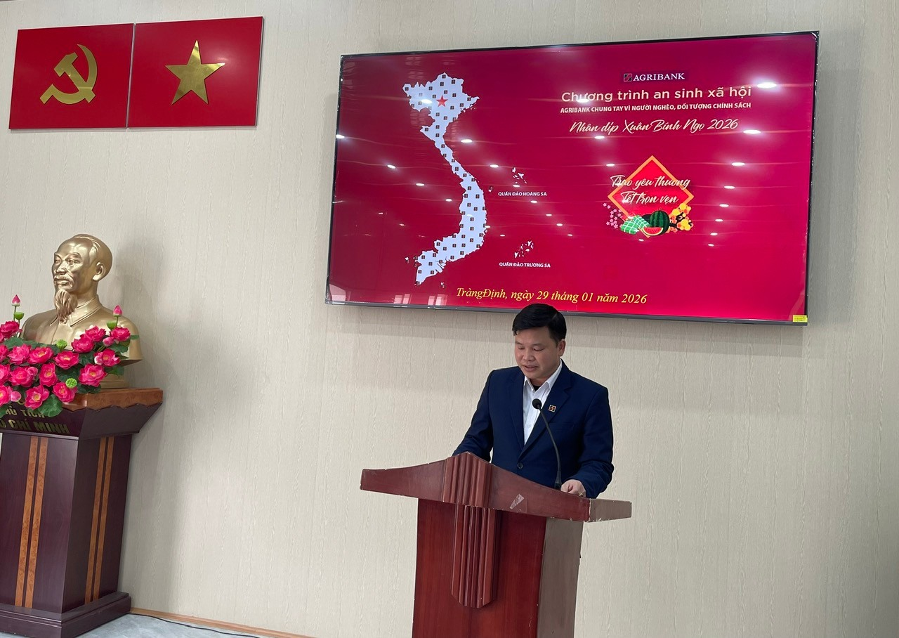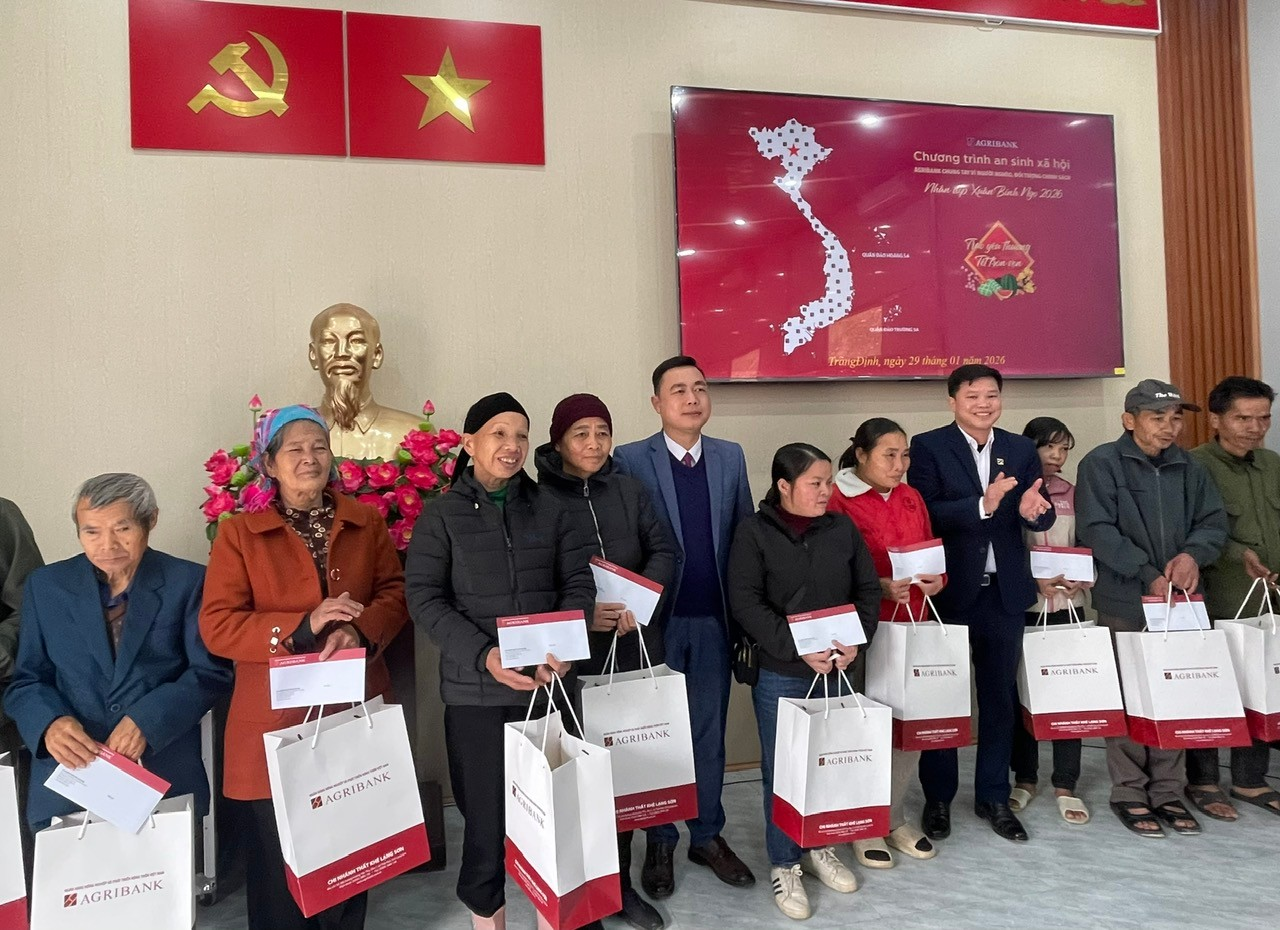 Sáng ngày 29/01/2026, Ngân hàng Nông nghiệp và Phát triển Nông thôn Việt Nam (Agribank) chi nhánhThất Khê đã tổ chức chương trình trao tặng quà cho các hộ dân nghèo, hộ có hoàn cảnh khó khăn trên địa bàn xã Tràng Định.