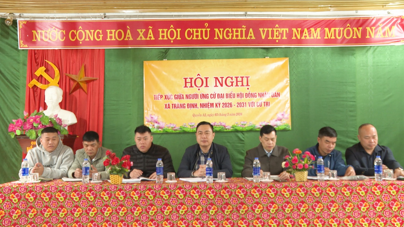 Thực hiện kế hoạch bầu cử đại biểu Hội đồng nhân dân xã nhiệm kỳ 2026–2031, vừa qua, đơn vị bầu cử số 5 đã tổ chức hội nghị tiếp xúc giữa những người ứng cử đại biểu Hội đồng nhân dân xã Tràng Định với cử tri tại các thôn: Bản Piòong, Quyền A2 và Quyền A1.