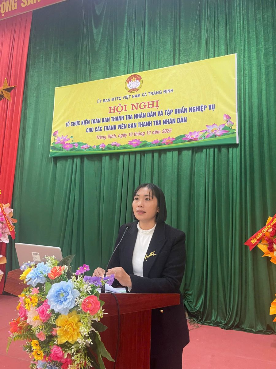 Ngày 13/12/2025, tại trụ sở Đảng ủy xã Tràng Định, Ủy ban MTTQ Việt Nam xã Tràng Định tổ chức Hội nghị kiện toàn Ban Thanh tra Nhân dân và tập huấn nghiệp vụ cho các thành viên Ban Thanh tra Nhân dân.