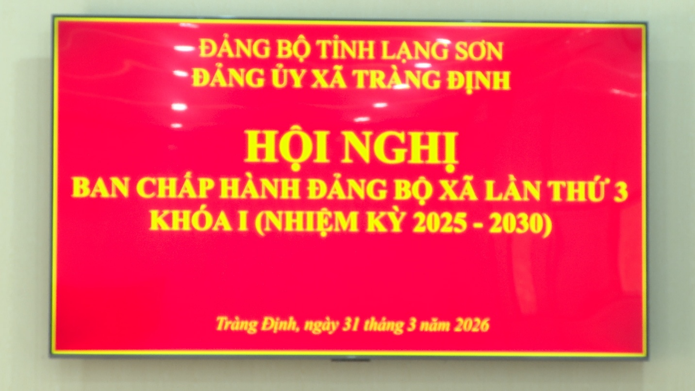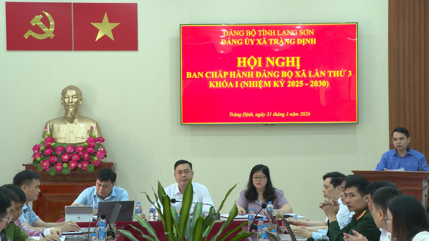 Sáng ngày 31 tháng 3 năm 2026, Ban Chấp hành Đảng bộ xã Tràng Định đã tổ chức Hội nghị lần thứ 3, nhiệm kỳ 2025 -2030 nhằm đánh giá tình hình thực hiện nhiệm vụ và triển khai phương hướng, nhiệm vụ trọng tâm trong thời gian tới.