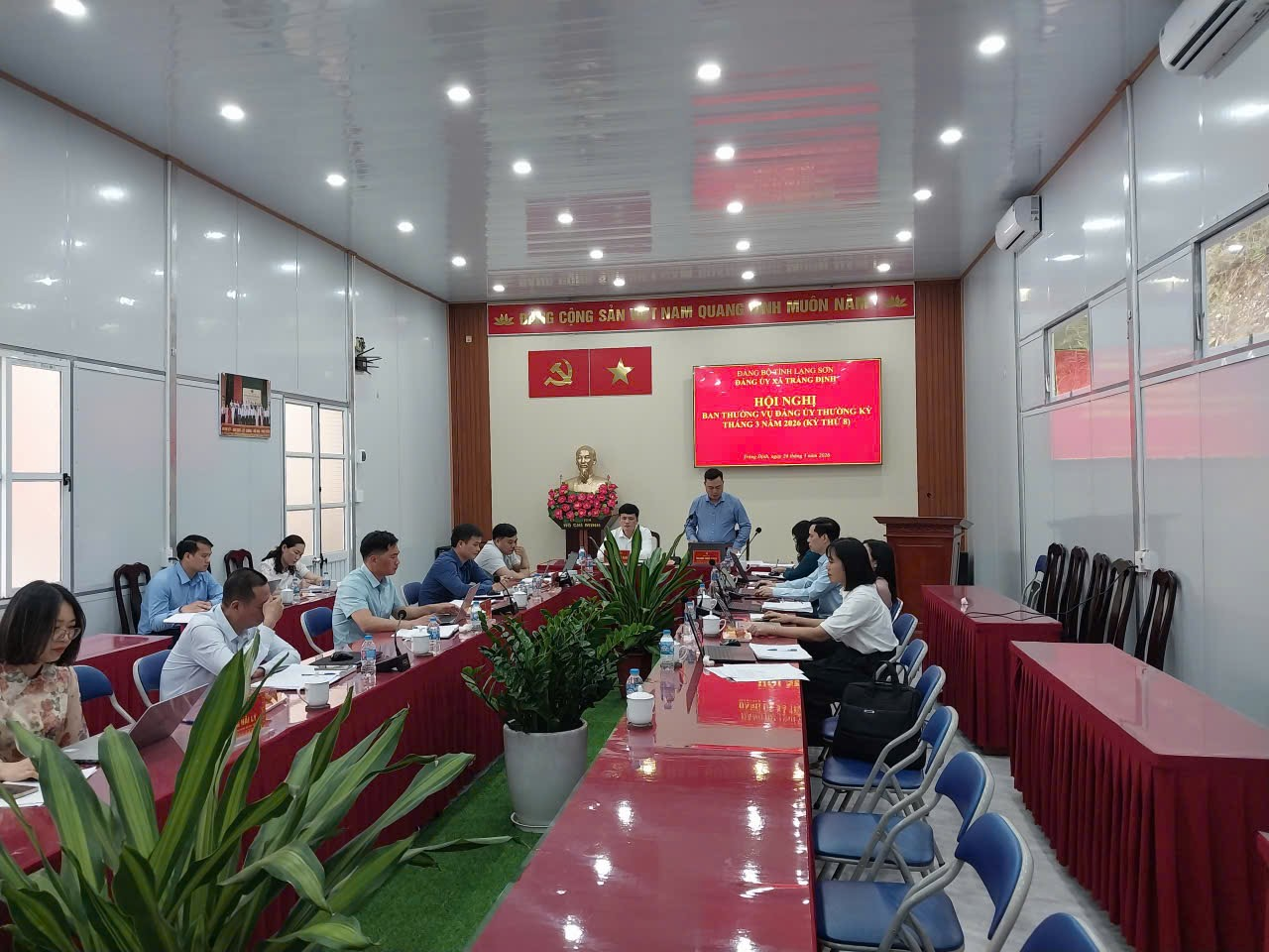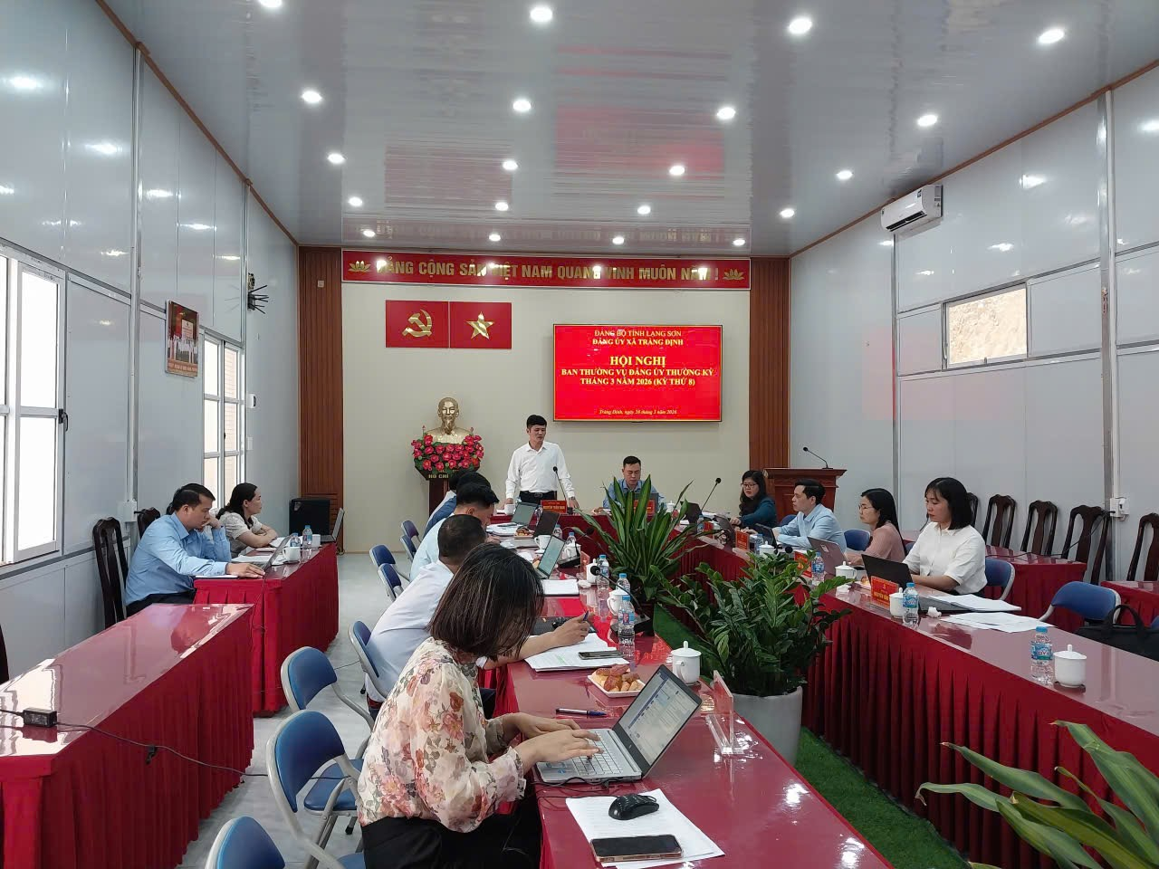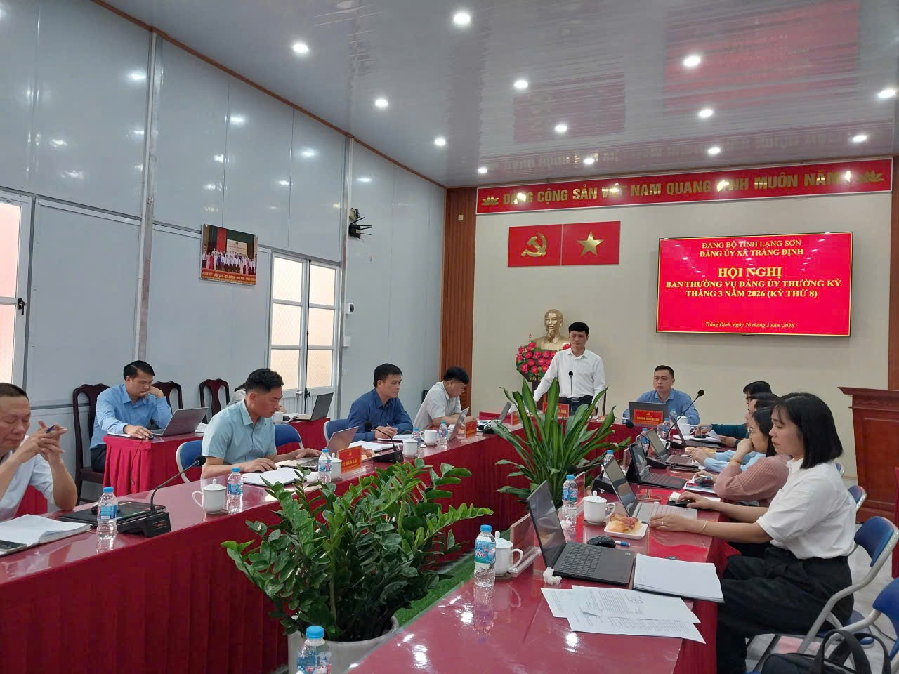 Sáng ngày 26/3/2026, Ban Thường vụ Đảng ủy xã Tràng Định đã tổ chức Hội nghị thường kỳ tháng 3 (kỳ thứ 8) nhằm đánh giá kết quả công tác lãnh đạo, chỉ đạo thực hiện nhiệm vụ tháng 3 và triển khai phương hướng, nhiệm vụ trọng tâm tháng 4 năm 2026.
