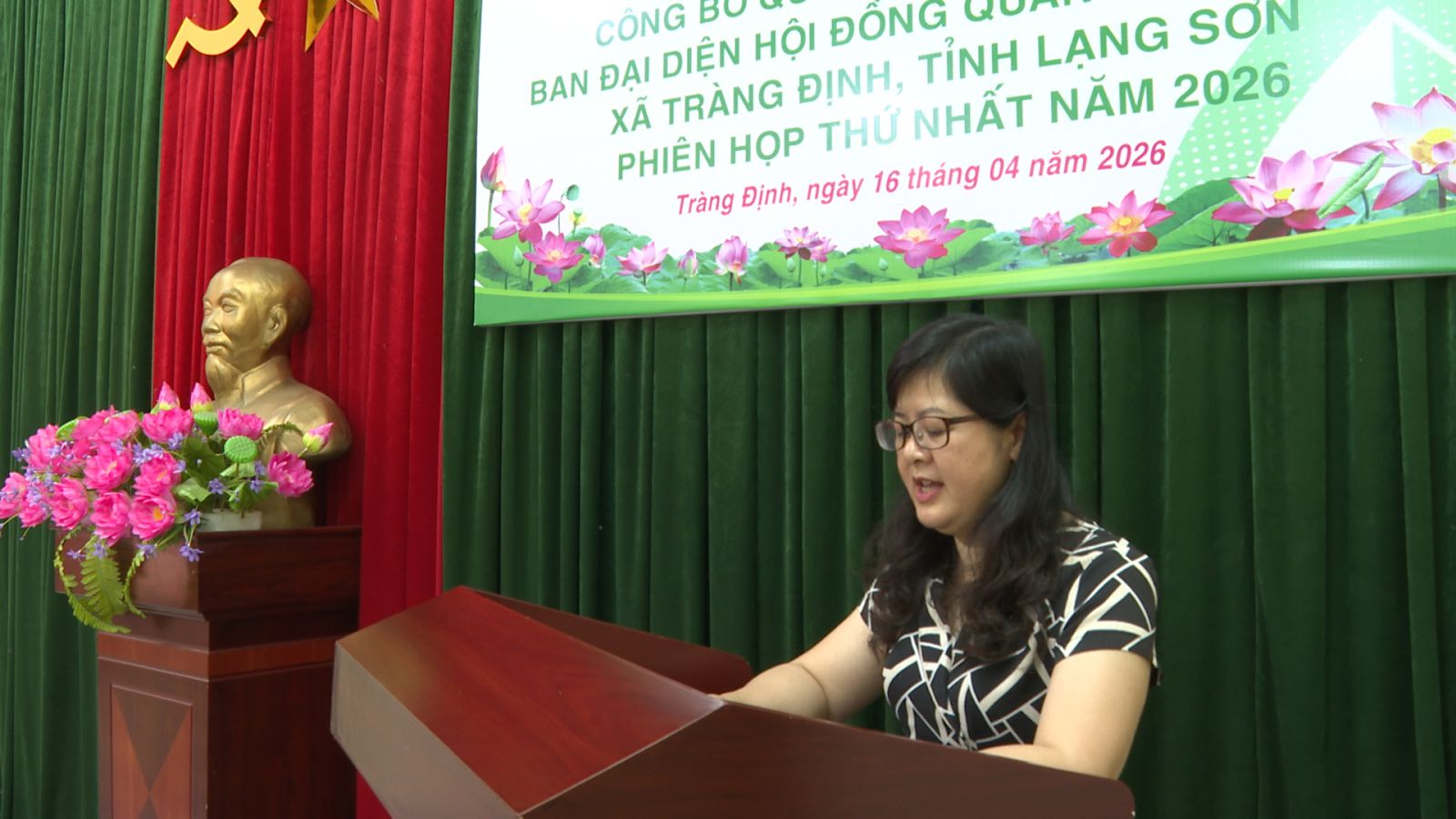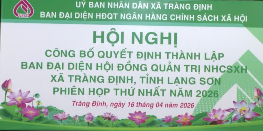 Tại Hội nghị, Chánh Văn phòng HĐND và UBND xã đã công bố Quyết định số 140 ngày 15/03/2026 của Chủ tịch UBND xã về việc thành lập Ban đại diện Hội đồng quản trị NHCSXH xã Tràng Định. Theo đó, Ban đại diện gồm 4 thành viên; trong đó, ông Ngọ Quang Khải, Phó Bí thư Đảng ủy, Chủ tịch UBND xã làm Trưởng ban; các thành viên gồm: Chủ tịch Ủy ban Mặt trận Tổ quốc Việt Nam xã; Trưởng phòng Kinh tế xã; các đồng chí Phòng giao dịch Ngân hàng Chính sách xã hội.