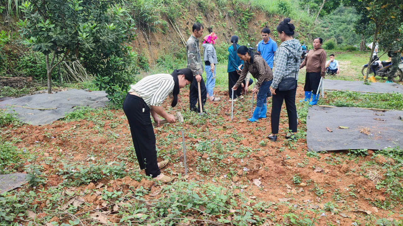 Ngày 22/4/2026, Hội Nông dân xã Tràng Định đã tổ chức hoạt động hỗ trợ gia đình anh Đường Văn Thông (thôn Bản Quyền) triển khai các biện pháp chống gãy đổ cho vườn cây Mắc ca trước thềm mùa mưa bão.