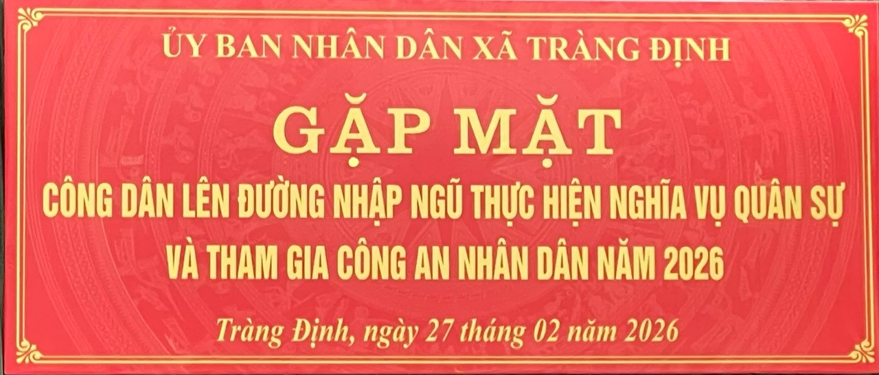 Năm 2026, xã Tràng Định có 32 công dân đủ điều kiện, tiêu chuẩn chính trị, sức khỏe, trình độ văn hóa sẵn sàng lên đường nhập ngũ, thực hiện nghĩa vụ thiêng liêng bảo vệ Tổ quốc.Trong đó có 25 công dân nhập ngũ quân sự và 7 công dân nhập ngũ bên lực lượng an ninh chuyên nghành công an. Công tác tuyển chọn và gọi công dân nhập ngũ được Hội đồng Nghĩa vụ quân sự xã triển khai chặt chẽ, đúng quy trình, đảm bảo công khai, dân chủ và đúng luật.Tại buổi gặp mặt, lãnh đạo UBND xã đã phát biểu động viên, biểu dương tinh thần trách nhiệm, ý thức chấp hành pháp luật của các công dân và gia đình; đồng thời mong muốn các tân binh phát huy truyền thống quê hương, nỗ lực rèn luyện, chấp hành nghiêm kỷ luật quân đội, công an, hoàn thành xuất sắc nhiệm vụ được giao.