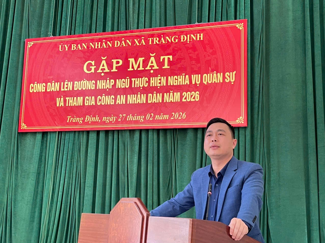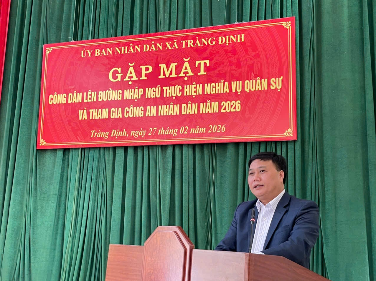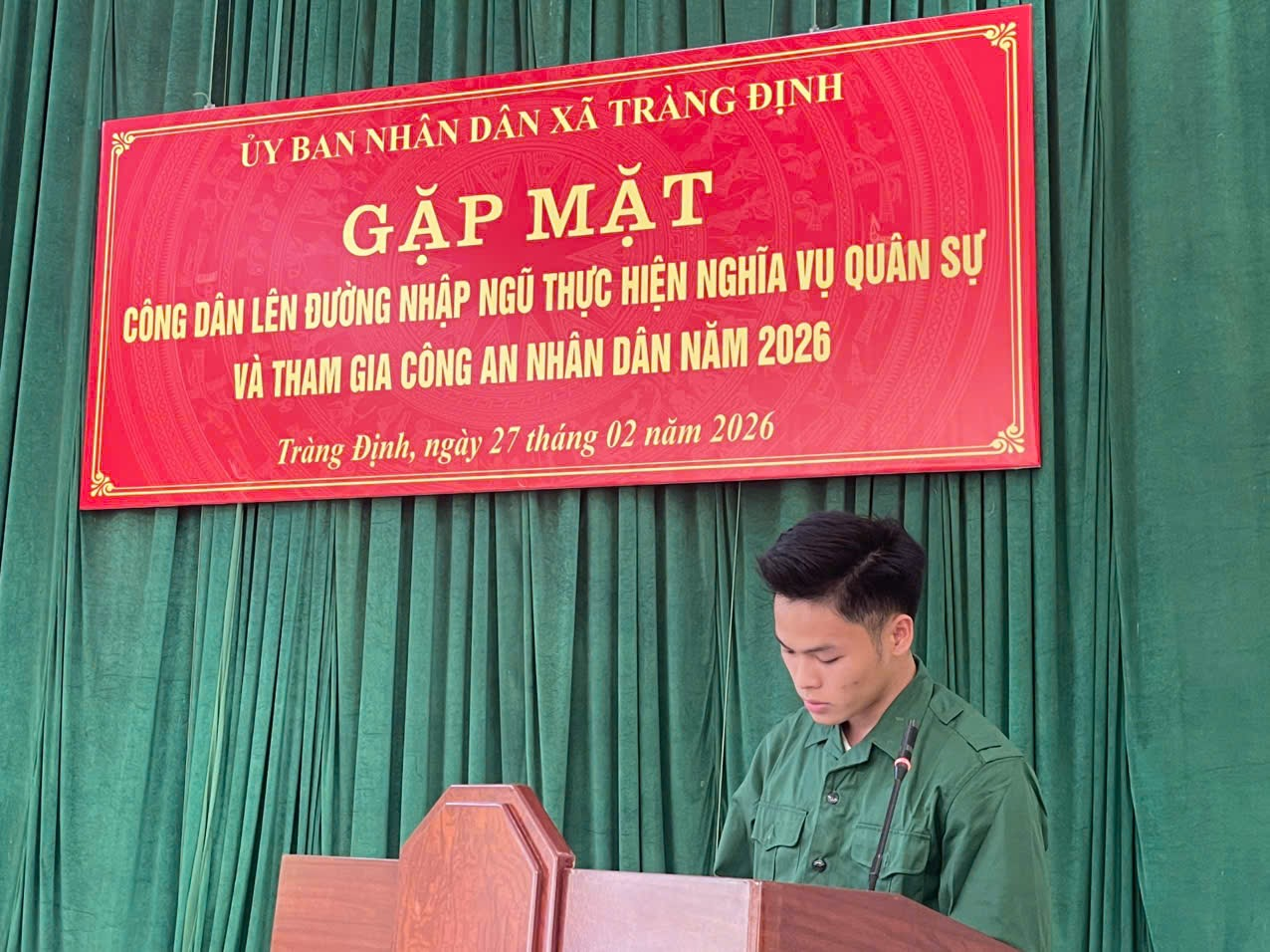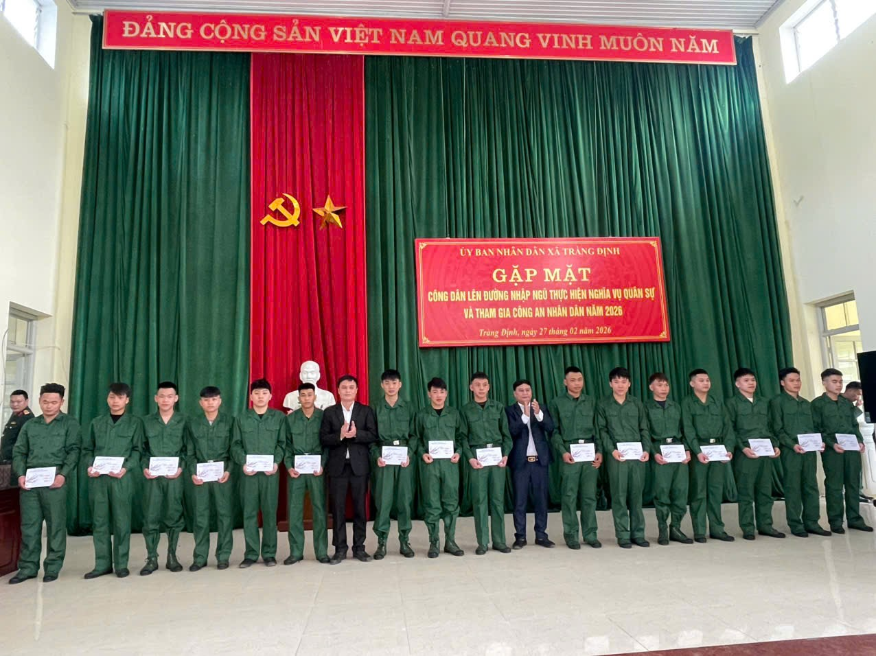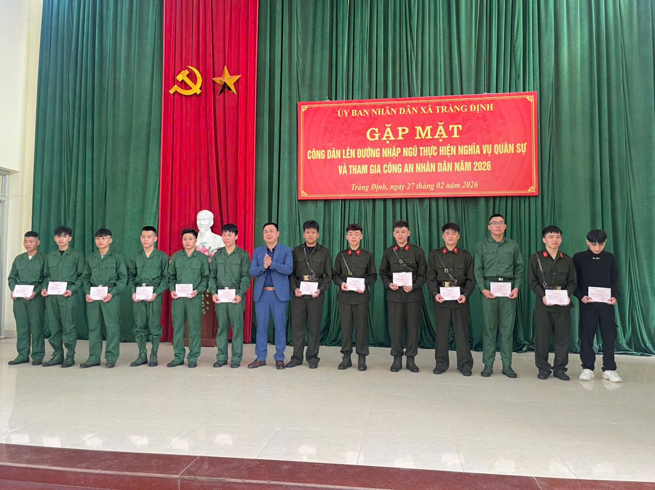 Chiều ngày 27/02/2026, UBND xã Tràng Định long trọng tổ chức chương trình gặp mặt công dân lên đường nhập ngũ thực hiện nghĩa vụ quân sự và tham gia Công an nhân dân năm 2026.