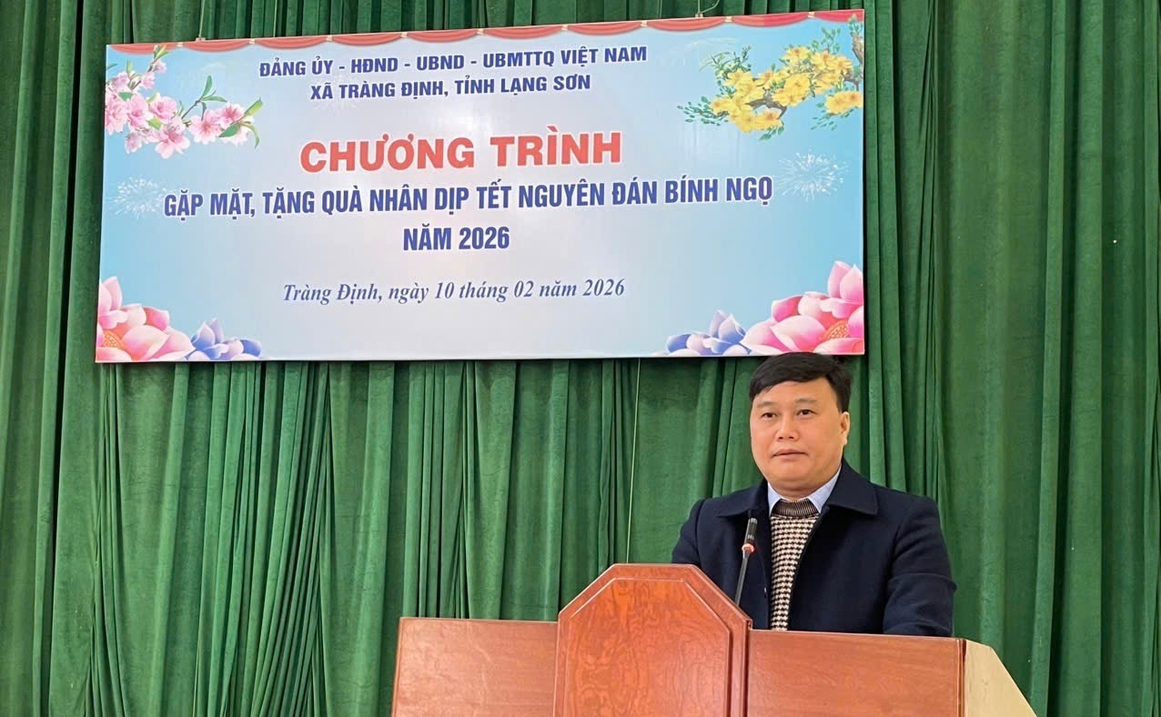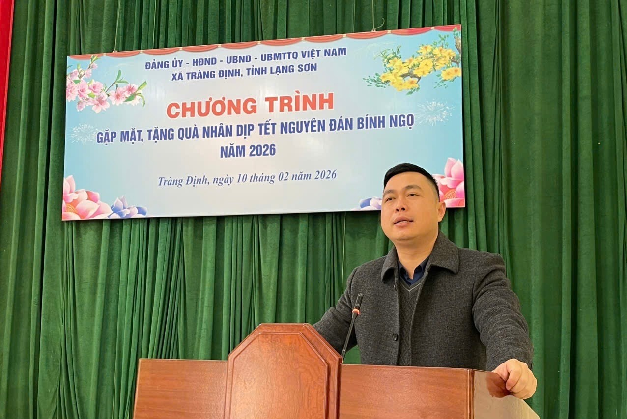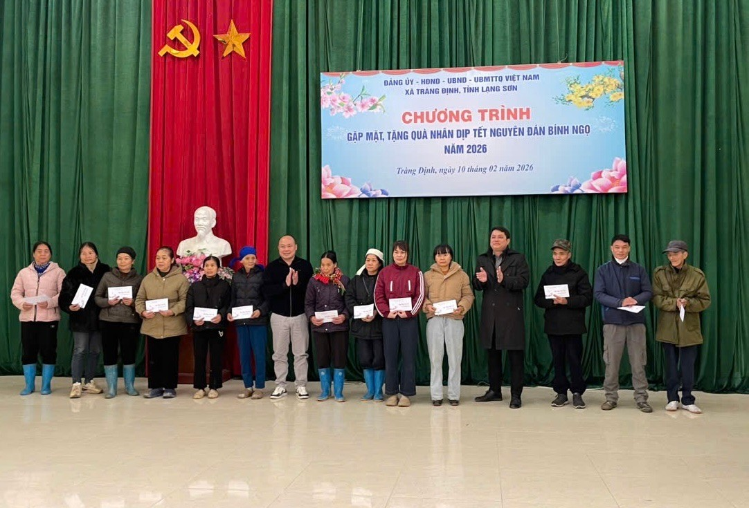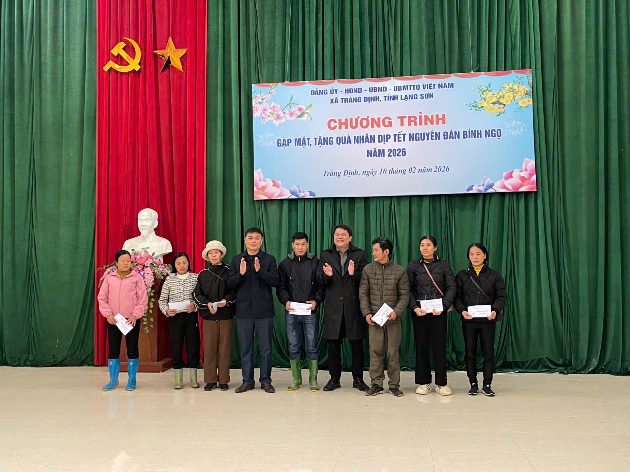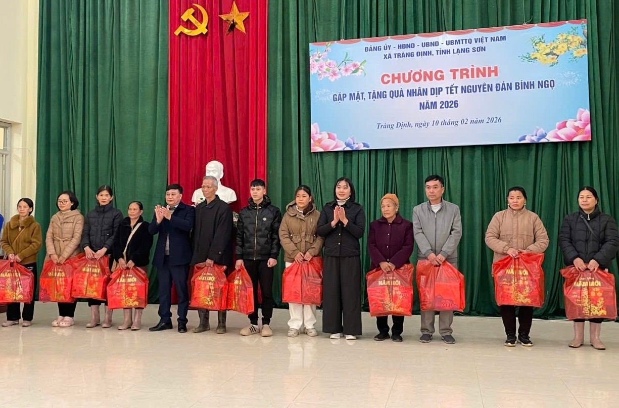 Nhân dịp Tết Nguyên đán Bính Ngọ năm 2026, xã Tràng Định đã tổ chức chương trình gặp mặt, động viên, tặng quà và chúc Tết các gia đình chính sách, người có công với cách mạng, các hộ nghèo, đối tượng bảo trợ xã hội và các hộ gia đình có hoàn cảnh đặc biệt khó khăn trên địa bàn xã.