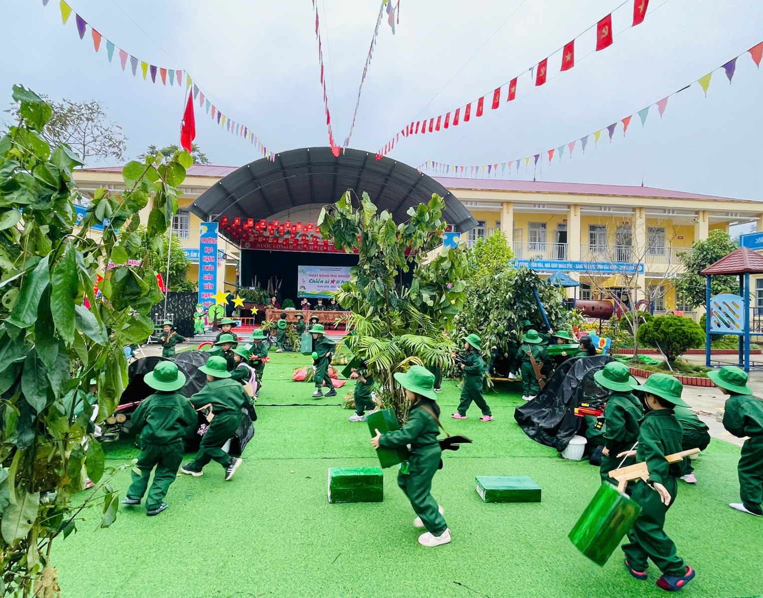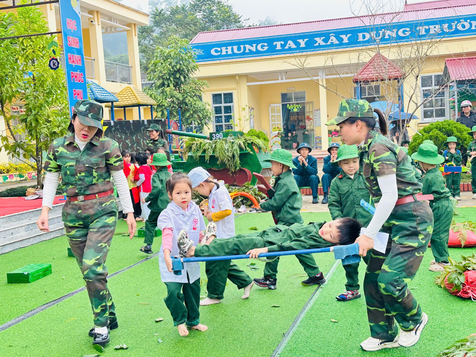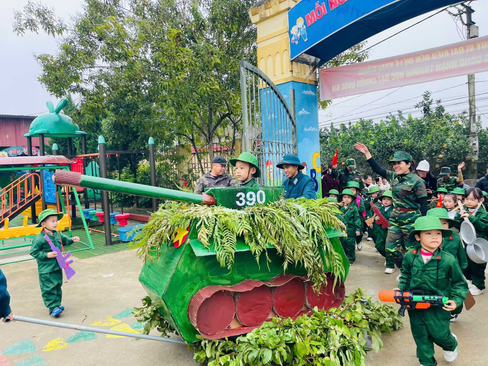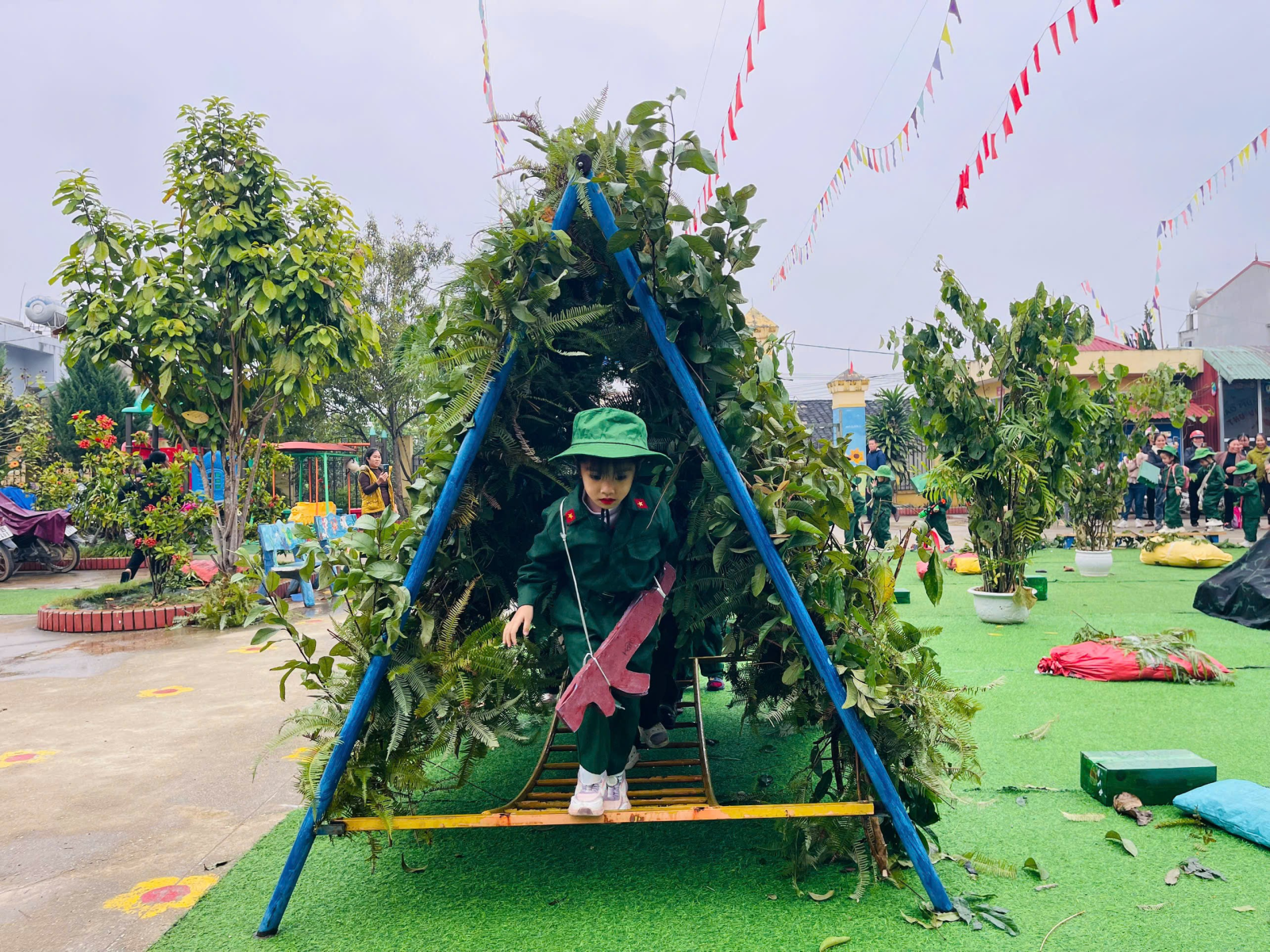 Trong không khí vui tươi, phấn khởi, các bé đã được tham gia nhiều nội dung trải nghiệm hấp dẫn như: duyệt binh, hành quân vượt qua các chướng ngại vật, tái hiện hình ảnh bộ đội trong chiến đấu và lao động, mang theo quân tư trang, ba lô ngụy trang, súng đồ chơi… dưới sự hướng dẫn trực tiếp của các chú bộ đội Trạm Radar 59 cùng các cô giáo nhà trường. Hoạt động không chỉ mang tính giáo dục cao mà còn giúp trẻ mạnh dạn, tự tin, phát huy tinh thần đoàn kết và kỹ năng làm việc tập thể.