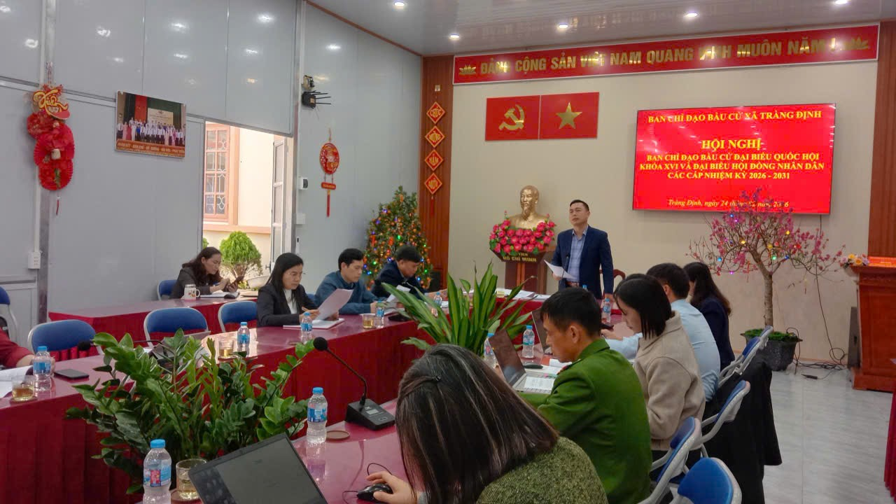 Chiều ngày 24/2/2026, Ban Chỉ đạo bầu cử xã Tràng Định đã tổ chức Hội nghị triển khai công tác bầu cử đại biểu Quốc hội khóa XVI và đại biểu Hội đồng nhân dân (HĐND) các cấp nhiệm kỳ 2026 - 2030. Đây là hoạt động trọng tâm nhằm chuẩn bị chu đáo, đồng bộ các bước trước thềm cuộc bầu cử theo đúng quy định của pháp luật.